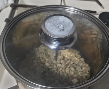 このまま2分弱煎ったところで2ハゼの音も最高潮になり、消火しました。