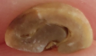 ちょうど1ハゼ時に生焼けになっていたところが空気が抜けたように、横に空洞になっています。