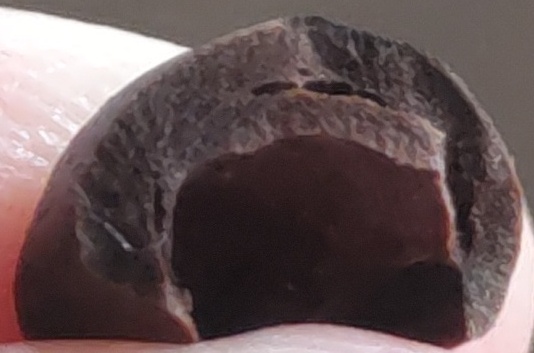 こちらは焙煎後のちょっと浅めの豆を割ってみた。