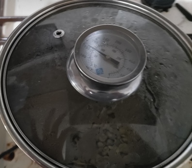 少し火力を高めて先ほどの温度まで戻します。味にどう影響するんだろうか。
